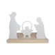 Diese Krippenszene besteht aus drei weißen Holzfiguren auf einer hellen Holzplatte. Durch die klare, stilisierte Formgebung fügt sich diese moderne Darstellung der Heiligen Familie harmonisch in die Weihnachtsdekoration ein. Ein unaufdringliches, aber stimmungsvolles Element für die Advent- und Weihnachtszeit.