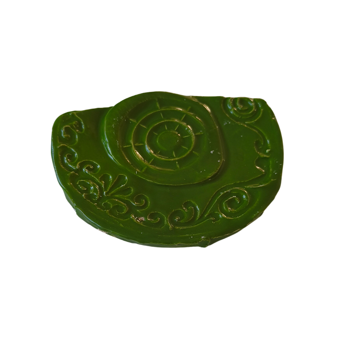 Farbenfrohes Lichtspiel: Diese handgedrehte Spiralkerze in Grün/Gelb hüllt den Raum in warmes Licht und zieht die Blicke auf sich. Ihr zur Seite steht ein handgefertigter Keramik-Untersetzer in Grün, der mit einem liebevoll gestalteten Muster verziert ist. Zusammen bilden die beiden ein stimmiges Duo, das jedem Tisch, Sideboard oder Fensterbrett eine besondere Note verleiht.